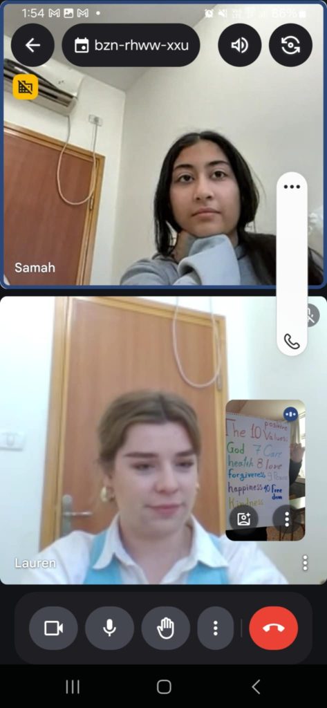 γλυκά. Αντίστοιχα, λάβαμε δώρα από τους Ουκρανούς συναδέλφους μας: γλυκά και παραδοσιακά δωράκια. Τον Φεβρουάριο, συμμετείχαμε σε διαδικτυακή συνάντηση με ένα σχολείο από τη Παλαιστίνη. Κατά τη διάρκεια του meeting ανταλλάξαμε απόψεις σχετικά με τις αξίες που είχαμε επεξεργαστεί, δηλαδή τις θετικές και αρνητικές αρετές που θεωρούνται σημαντικές στις χώρες μας. Έπειτα, οι καθηγητές δημιούργησαν διεθνείς ομάδες και όρισαν αρχηγούς, οι οποίοι έστειλαν τις ίδιες τρεις ερωτήσεις σε όλα τα μέλη της ομάδας τους. Όταν συγκεντρώθηκαν οι απαντήσεις, οι μαθητές δημιούργησαν παρουσιάσεις με τις διαφορετικές απόψεις.